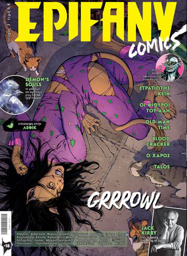 Another publication by Phase Productions is the anthology magazine Epifany, for which Chilas collaborated with the artists Captain Jimmy and Panos Kamoulakos on the superhero mystery series 'Grrrowl' (2019).