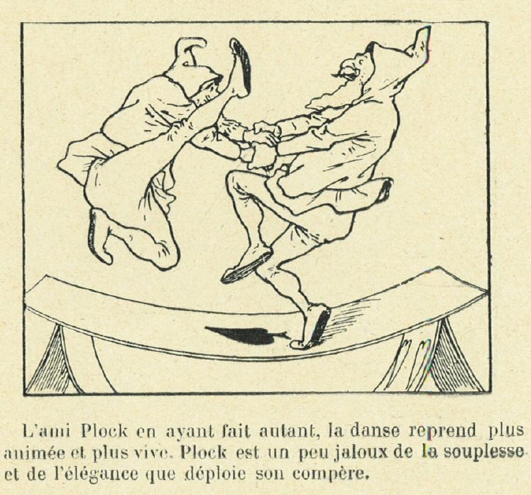 Christophe's 'Les Malices de Plick et Plock' (23 December 1893 - 1904) ran for 55 episodes in Le Petit Français Illustré and drew inspiration from the malicious gnomes Lothar Meggendorfer had created for the German magazine Fliegende Blätter. In Christophe's version, two gnomes enjoy playing tricks with child-like glee. Despite frequently being punished for their mischievousnes, they never learn from their mistakes.