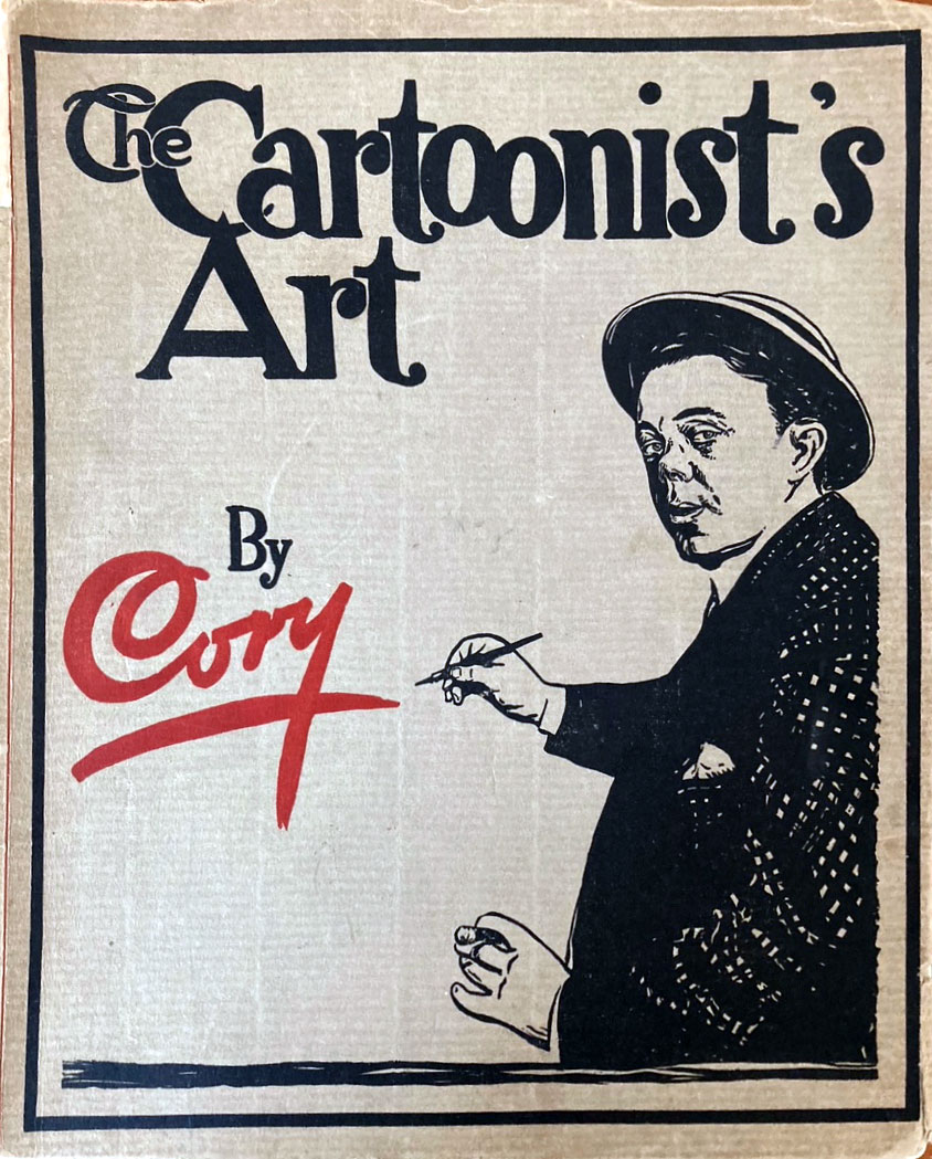 Between 1912 and 1914, he became cartoonist for the Scripps News Service and their magazines. He published an illustrated travel diary about a 1913 trip to Colon, Panama, serialized in the Tacoma Times. Although the text was credited to one “Uncle Dud”, this was actually a pseudonym for himself. His acquaintance Berton Braley also made the trip to Panama and on their return, the two men teamed up for an illustrated poetry newspaper feature. Cory also traveled to Washington to study U.S. President Woodrow Wilson's cabinet and serialized these caricatures under the title 'Who's Who in Wilson's Cabinet' in The Santa Fe New Mexican. Around this period, he also brought out an educational book, 'The Cartoonist's Art' (The Trumbo Co., Chicago, 1912), giving practical tips on how to draw cartoons. Eight years later, it received a reprint by The Prang Company in New York.
