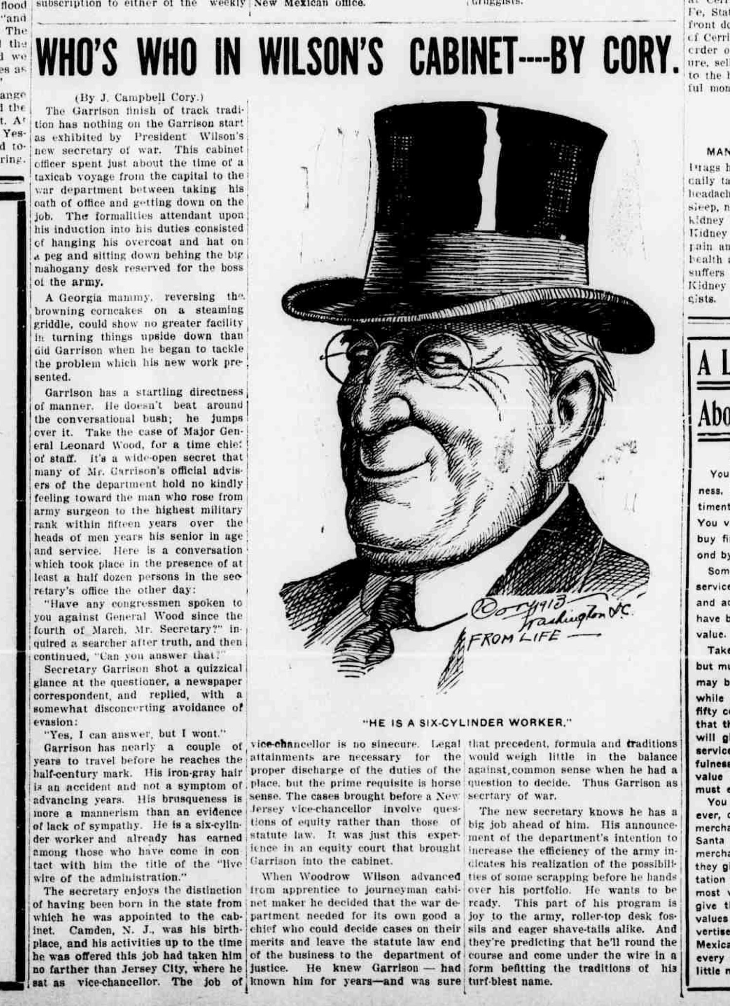 'Who's Who in Wilson's Cabinet' (The Santa Fe New Mexican, 29 March 1913).