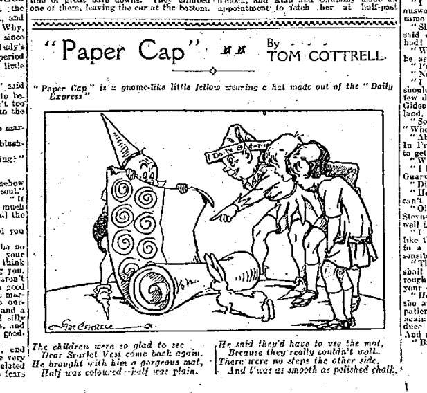 By the time he served in the armed forces during World War I, he was selling his cartoons to Punch and the military papers Sea-Pie Magazine (founded to raise funds for authorised naval charities) and Blighty. After the war, he became a lobby correspondent and press cartoonist with the Beaverbrook group of newspapers, which notably included the Daily Express. For this paper, he made the picture story 'Paper Cap', about a gnome-like character who wore a cap made out of a Daily Express. The serial ran from 2 May and 21 June 1921, during a gap between two stories of Mary Tourtel's 'Rupert Bear'.