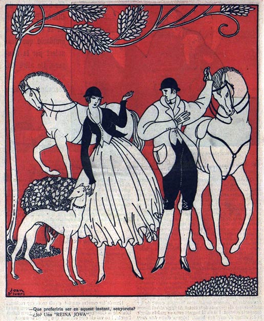 Vila started his working life making stained glass works with his father. In September 1909 and March 1910, the prestigious weekly Papitu - founded by Apa - printed two of his drawings, which he signed with "Iras". He later turned to using the pen name D'Ivori, as a reference to his very pale skin. Through his connection with the bibliophile Ramon Miquel i Planas, Vila made cover designs and illustrations for the popular Catalan fable collection 'Les Rondalles Populars Catalanes' (1909), as well as the literary children's weekly La Rondalla del Dijous.