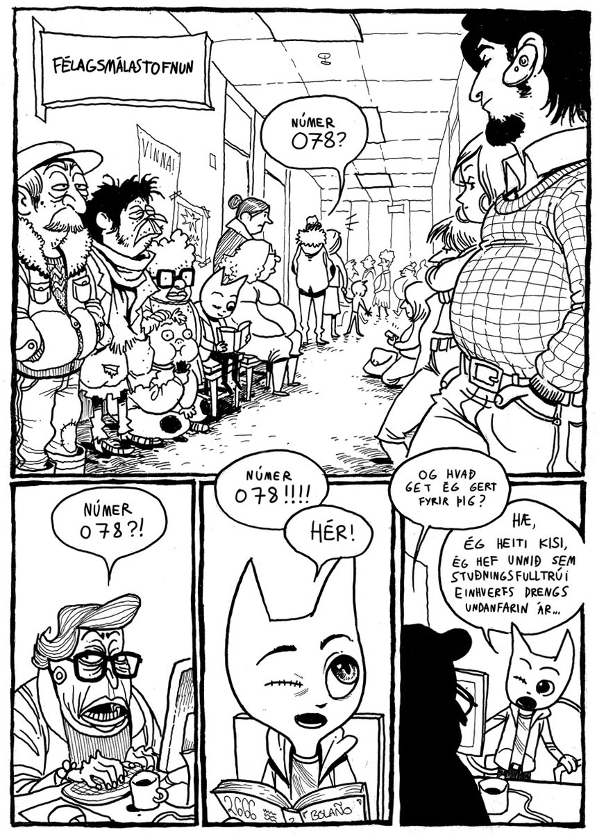 In 2005, Dagsson created his comic series 'Eineygði kötturinn Kisi' ("Kisi, The One-eyed Cat"). Kisi is an anthropomorphic cat who lives on the Öskjuhlíð hill, near the Icelandic capital Reykjavik. His best friends are Kata, a female rabbit who loves to party, and Sküli, a tortoise who uses his knowledge of chemistry to deal drugs. 'Kisi, The One-Eyed Cat' was serialized in the magazine Sirkus Rvk and subsequently collected into five book titles.