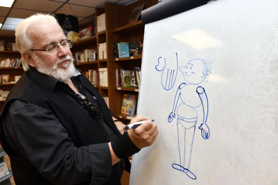 Marc Daniëls was born in 1959 in Brussels, Belgium. He studied Fine Arts at the Royal Atheneum in the Brussels suburb Jette, and additionally achieved a certificate in Criminology and Management. As early as 1975, Daniëls was active as painter and artist, but he only turned independent in 1992. His earliest cartoons, illustrations and gags appeared in local Brussels publications like Brussel Deze Week, 't Cursiefje, Gazet van Jette and the national paper Het Nieuwsblad. Daniëls also made illustrations and caricatures for private individuals, and drew gags with 'Cas & Joeber' for local and regional newspapers.