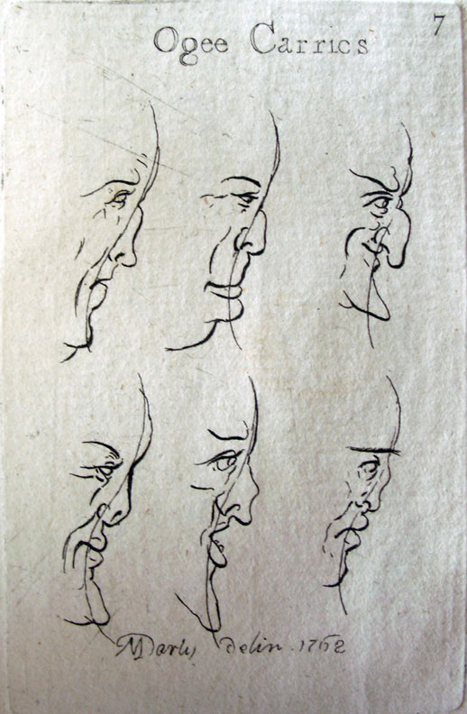 Exactly how Matthew and Mary Darly's cartoons were produced is up for debate. Some are attributed to Matthew Darly, others to Mary Darly. Several have the ambiguous signature "M. Darly". It wasn't uncommon in past centuries for women to publish art under a male name, or for critics to assume a piece of art was made by a man. However, Mary Darly was one of the first to actually enjoy fame as a "female artist", and even as the first female cartoonist who can be identified by signature. She took pride in her profession and named herself "the Fun Merchant, at the Acorn in Ryder's Court, Fleet Street". Given that many of Darly's cartoons dealt with fashion, which is traditionally more a female interest, it seems obvious that Mary drew most of these caricatures herself. There are also enough cartoons published under her own name to assume that she probably drew most of them alone. The title page of one of 'Darly's Comic-Prints' clearly reads "Pubd by Mary Darly". She also published an entire book with caricatures under her own name: 'A Book of Caricaturas' (1762). Caricatures themselves are as old as drawing itself. Artists like Leonardo Da Vinci, Quinten Matsijs, Hieronymus Bosch and William Hogarth offered some of the earliest examples with a signature. The term "caricature", derived from the Italian word "caricare" ("to charge" or "load"), also existed before. But Mary Darly's book about caricatures is the first of its kind in history, by any person! It came with three instructional pages, explaining readers how to exaggerate a person's face.