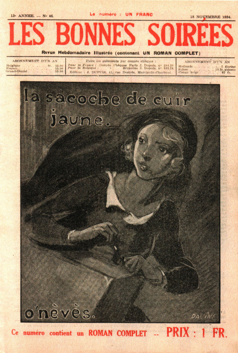 During the magazine's first year, the team of Rob-Vel, Blanche Dumoulin and Luc Lafnet provided Spirou magazine with several additional features, like the serial 'Bibot et Tribar' and the gag strip 'Babouche', creations attributed to Velter and Lafnet. The signature of Davine appeared underneath editorial illustrations, but also in the panels of the melodramatic black-and-white comic serial 'Les Aventures de Zizette' (1938-1939), a tearful story about a child stolen from her parents. Some episodes are signed with "Laf + Dav" (Lafnet + Davine), proving that Blanche Dumoulin also turned to using the Davine name. It is assumed that Dumoulin wrote the serial, and Lafnet provided the illustrations. In 1939-1940, Davine also illustrated a serialization in Spirou of the George Fronval novel 'J. Robin, Chasseur d'Images'.