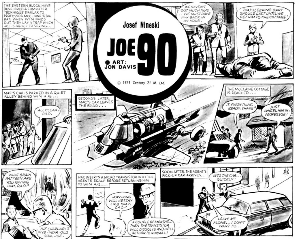 Most of his City output was for licensed titles made in cooperation with Gerry and Sylvia Anderson's TV production company Century 21. Davis drew for several of the comic features based on the Andersons' puppet TV series. In the girls' title Lady Penelope, he illustrated 'The Angels', a spin-off of 'Captain Scarlet and the Mysterons', but also the non-Anderson feature 'Daktari'. He was also present in Joe 90: Top Secret (1969) and TV21 with 'The Champions' and 'Secret Agent 21'. In the 1970s, he continued his Anderson-related work at Polystyle Publications, drawing 'Joe 90' and episodes of 'UFO', 'Thunderbirds', and 'The Secret Service' for Countdown (1971-1973). For another Polystyle title, Target, he drew a comics serial based on the US TV detective series 'Kojak' (1979).