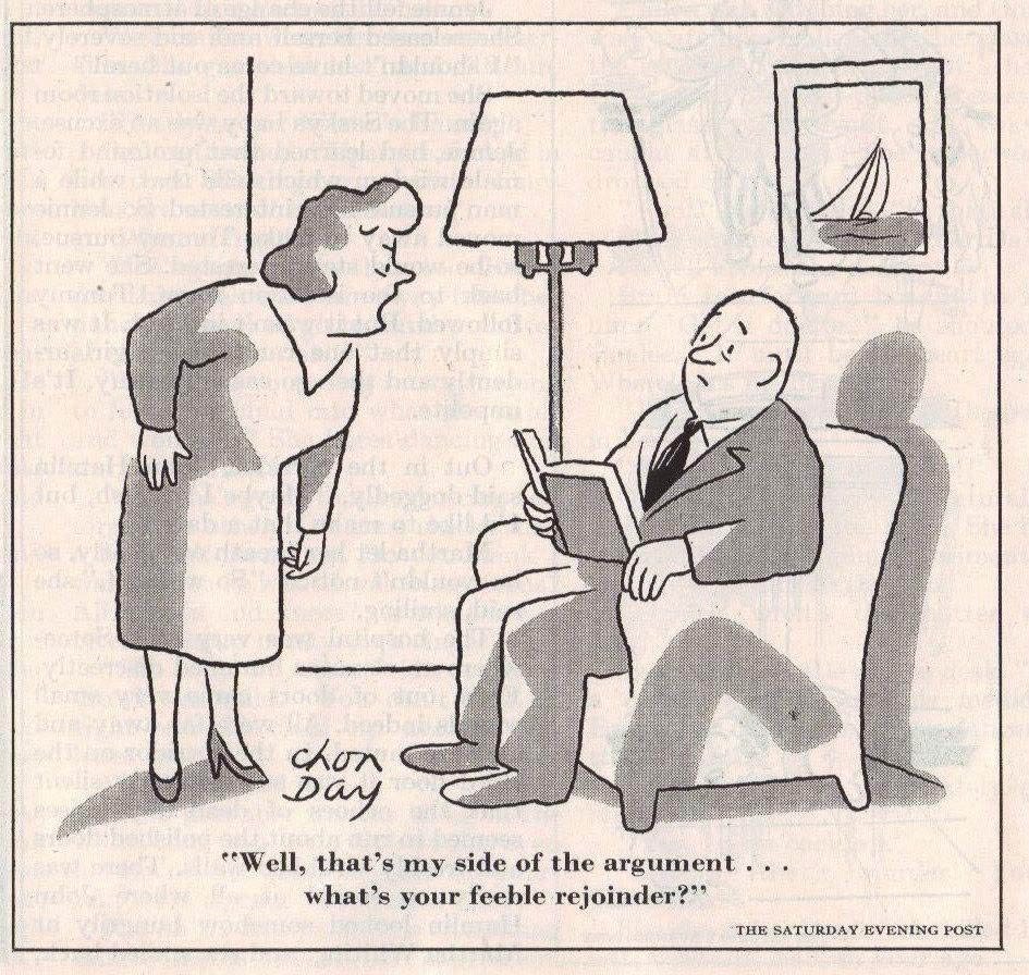 Chon Day was present in The New Yorker since the early 1940s, and this magazine always offered his cartoons to this magazine first, before presenting them to other publications. He was also a longtime contributor to the Saturday Evening Post from 1934, and his work additionally ran in Ladies Home Journal, Good Housekeeping and Hugh Hefner's Playboy. His cartoons were drawn in clear, fluent lines and mostly reflected the changing times in the U.S. with a sardonic, dry wit.