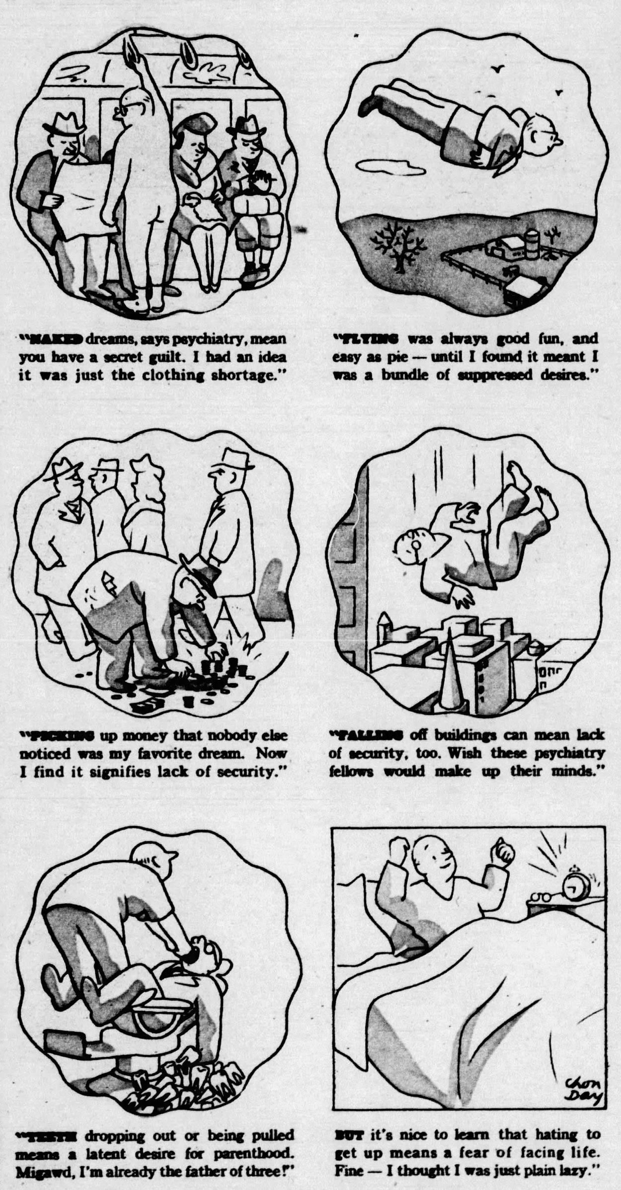 Comic strip about the meaning of dreams, published in The Indianapolis Star on 8 December 1946.