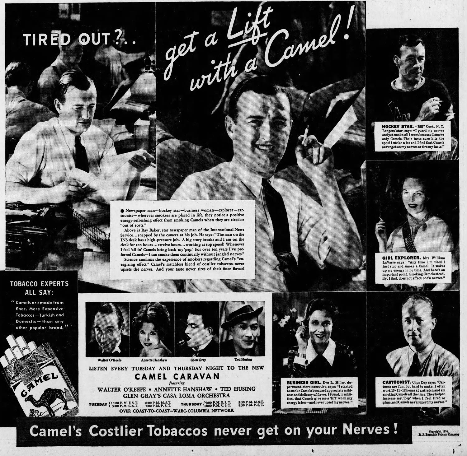 Chon Day appeared in a tobacco ad in the Harrisburg Telegraph, 28 November 1934 (bottom right).