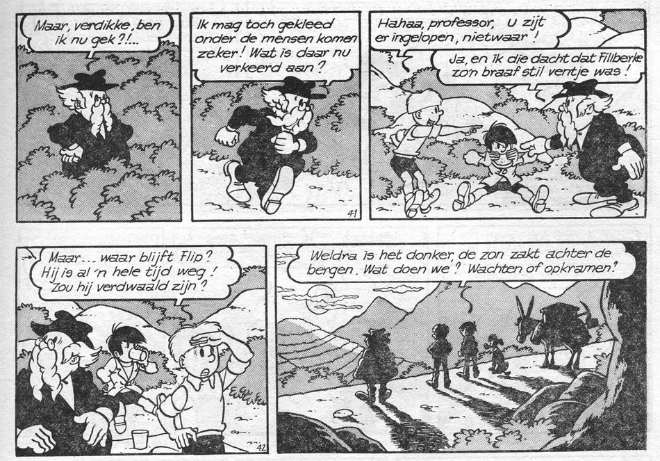Through a newspaper ad, De Sterk then applied for an assistant job with Jef Nys, creator of the popular Flemish children's comic 'Jommeke', serialized in the newspaper Het Volk. Beginning his employment on 1 October 1972, he stayed at this studio for 30 years, with the exception of a two-year interlude. It took a while before De Sterk got the Nys style in his fingers. Nys could be a difficult taskmaster and often instructed his assistants to start all over again when he noticed drawings were "off-model". Taking his job seriously, the left-handed De Sterk even trained himself to draw with his right hand, so that his drawings would match his taskmaster's wishes. Interviewed by Pieter Deschoolmeester for Stripspeciaalzaak (31 March 2023), De Sterk dismissed the insinuation that Nys ordered him to draw right-handed and stated that it was entirely his own initiative.