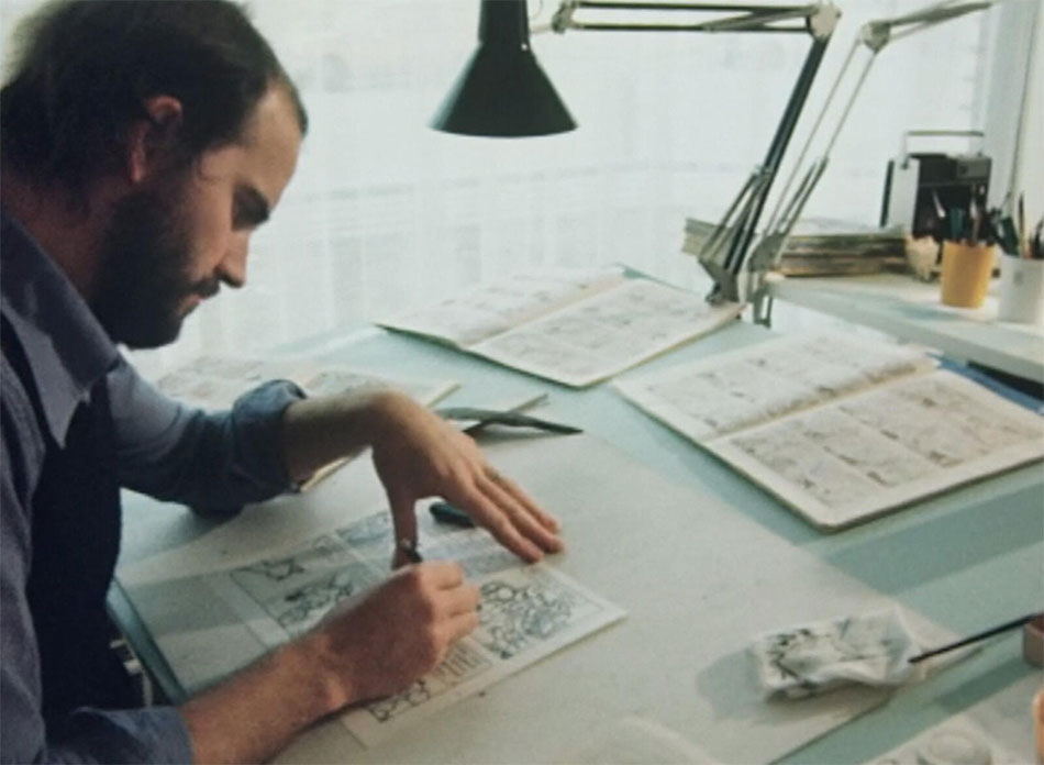 Hugo De Sterk working on 'Jommeke' in the 1970s. Still from a VRT news report.