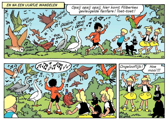 Creating about three albums a year (and Van Loock two), Delzenne crafts his stories with fantasy elements, a realistic depiction of animals, and more crowded, atmospheric panels. Delzenne has named Filiberke his favorite character, since he has such a strong imagination. Over the years, the team has been enhanced with the new artists Dieter Steenhaut, Kristof Fagard and Steve Van Bael, with Delzenne training the first two. Additional scriptwriters have been Marc Legendre and Kristof Berte.