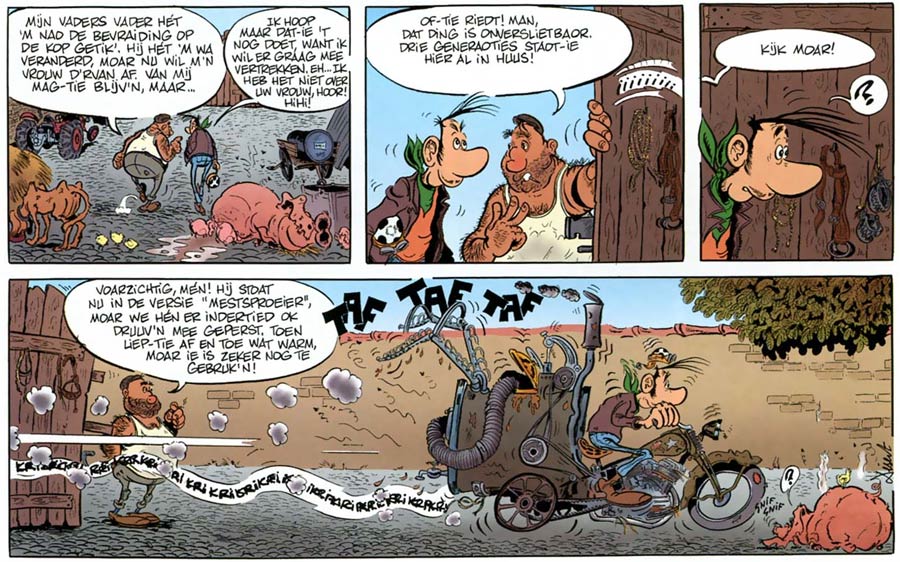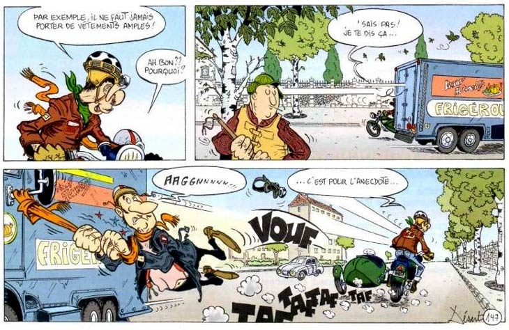 A self-taught artist, Désert learned the finer points of the profession by reading comics by classic grandmasters like Hergé, Morris, André Franquin and Albert Uderzo. But just like the other biker comic, 'Joe Bar Team' by Bar2 and Fane, Désert's main graphical reference is Franquin.