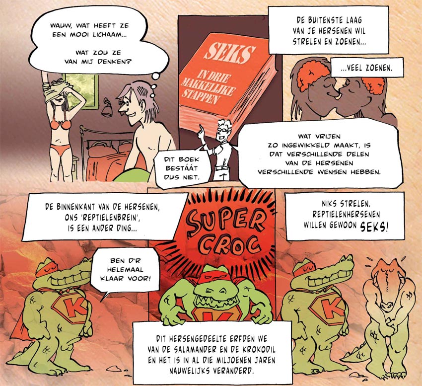 Jan Bart Dieperink has collaborated with scientific journalist Mark Mieras on several educational books about the adolescent mind. The first was the graphic novel 'Heftige Hersens!' (Nieuw Amsterdam, 2013), which gave insights into the different activities in the busy brains of adolescents in documentary format. Why do they fall in love, become jealous or in doubt about their bodies? Visual artist Laura Laaroo provided the coloring and graphic design. The book was presented in the Stadsschouwburg city theater of Amsterdam where young actors performed scenes from the book on stage. This interactive show has been revived several times. An updated edition was released by Bazalt in 2019. Dieperink and Mieras' next collaboration was 'Voor de Leeuwen!' (Van Gorcum, 2016), a guide book for teachers to become self-assured in their work by understanding the ways and means of their young students. Teacher and author Marijke van Dijk served as a consultant.