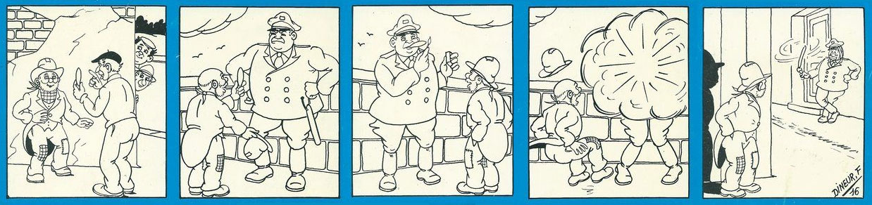 While Dineur was a Belgian comic pioneer and creator of a popular series with a remarkable longevity, he has remained an unsung hero. His work has rarely been reprinted and is almost forgotten today. A major reason was his untimely death, which happened one decade before comics were revalued and appreciated by both public and critics. Had he lived a little longer, Dineur may have become a household name amongst comic book aficionados. He still remains caught in the shadow of his successors.