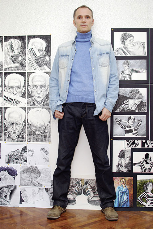 As a fine artist, Branko Djukic has constantly explored different directions, which sometimes has led him to the poetry of comics. He takes his inspiration from whatever comes his way. In a 2015 interview with Vreme.com, Djukic explained: "I listen to Wishbone Ash and then I draw a series of drawings that are dedicated to knights. I hear some nonsensical information on TV and turn it into an even crazier drawing. It happened to me that I hear some folk hit in the supermarket, so I can't wait to get home and embody it in my own way. I allow all possible forces to act on me. There is nothing anymore that cannot be made into art." On Facebook, he has regularly posted his "drawing-quotes", a series of intentionally unfinished comic-style sketches, inspired by photos he found in magazines or on the web.
