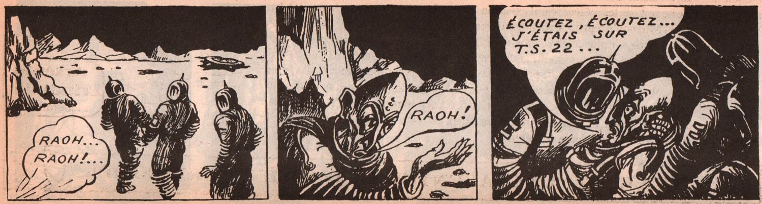 His comics production was limited to vertical and horizontal strips for the French communist press in the 1950s. Just like Gilbert Bloch, he adapted several literary works to the text comics format for L'Humanité. These included Théophile Gauthier's 19th century novel 'Militona' (1954) and Boris Polevoy's 'Story of a Real Man' ('Un Homme Véritable', 1956), a Russian novel about a Soviet World War II fighter pilot. He also made a strip about the Tour de France, called 'Plus d'un Tour dans Votre Sac' (1955, script by Abel Michéa), as well as the science fiction serial 'S.O.S. Espace' (1958-1959), which was both a text comic and a balloon comic. The Tour de France feature was also printed in the papers Le Patriote and L'Echo du Centre. For the Sunday paper L'Humanité Dimanche, he produced an adaptation of the Russian sci-fi novel 'Andromeda Nebula' by Ivan Yefremov ('La Nébuleuse d'Andromède'), a serial about the life of 17th century playwright Molière ('La Vie de Molière'), the historical comic strip 'L'Inquisition' and the full page text comic 'Le Chevalier de l'an Mil'.
