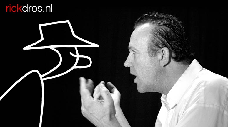 With actress Majanka Fröhlich, Dros performed his next shows, 'Wij zijn de Everly Brothers niet!' (1998) and 'Romeo en Hoe-heet-ze-ook-al-weer' (2000). In 2001, he released the musical album 'Tzal Wel Weer Feest Zijn' on his own. With Annette Botterman, he hosted the show 'Wat?!' on the local radio station Zaanradio. As a scriptwriter and director, Rick Dros has been involved in over sixty theater productions, including many primary school musicals produced by Rep-en-roer. Associated with the MBO Theaterschool Haarlem, Nova College and the improvisation theater group Het Speelt!, Rick Dros also gives masterclasses in acting, directing and scriptwriting for stage shows. Since 2007, he has organized performances in theaters and on location under the banner Theaterhuis Rick Dros.