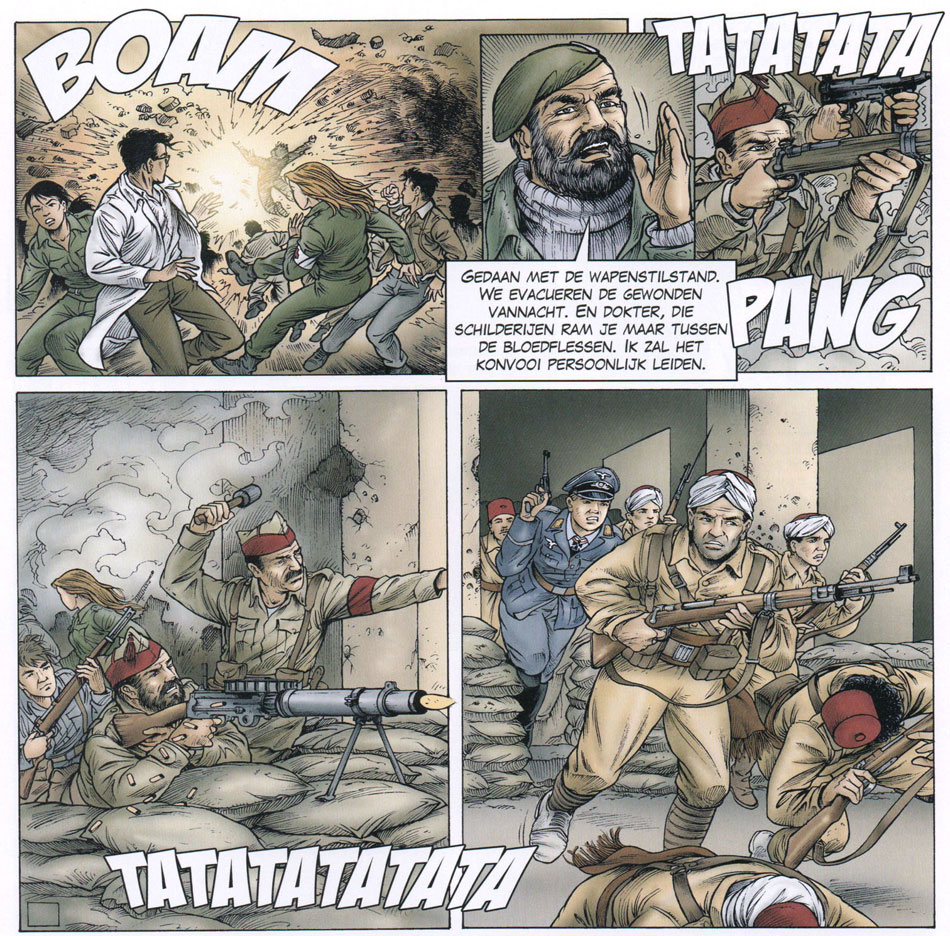 When Du Caju's daughter went to school, she happened to be a classmate of the daughter of film director, screenwriter and novelist Jean-Claude van Rijckeghem. As she was a fan of 'De Kiekeboes', Van Rijkeghem's daughter recognized Du Caju's name. Both fathers got along well and as such the idea grew to create a World War II comic together. Van Rijkeghem had never written for comics before, but felt it was an interesting challenge. Since he always co-wrote juvenile novels with Pat Beirs, he brought along his creative partner too. The end result was 'Betty & Dodge' (2008-2012), a historical action-adventure comic series set during the 1930s and 1940s.