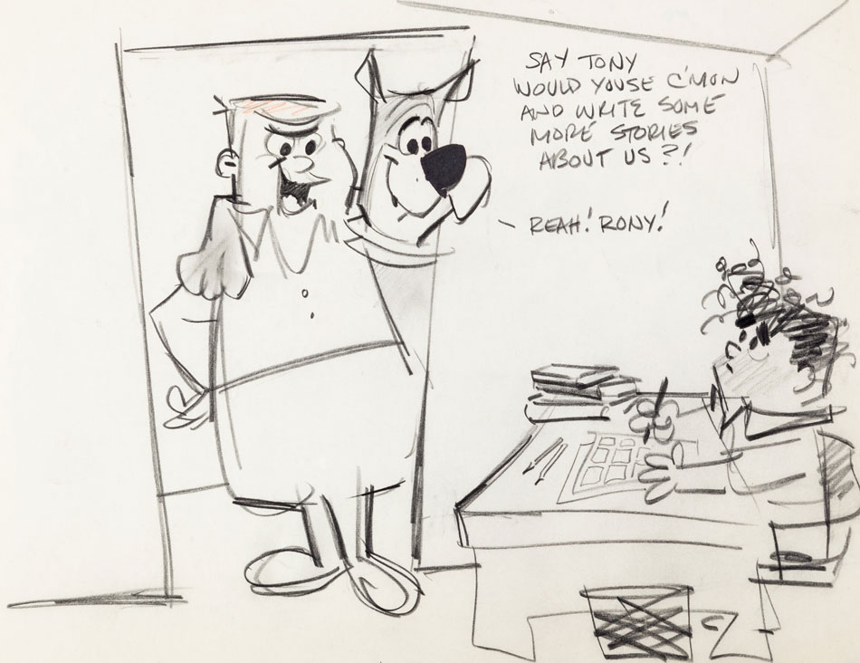 In 1961, Jerry Eisenberg received a call from Joseph Barbera. With the MGM animation department closed down, Barbera and William Hanna had established their own TV animation studio, Hanna-Barbera Productions, which became the most popular and profitable of its kind in the early days of television. He asked Eisenberg to join them as a lay-out and character designer. At the time, many classic Hollywood animation studios were transitioning to TV animation anyway, so Eisenberg didn't have to think long. As his father Harvey Eisenberg had been a lay-out designer too, he advised his son to stay with Warners a little longer, to acquire some more animation skills before joining Hanna-Barbera. He did, but during a holiday period, Eisenberg worked at Hanna-Barbera for a few days, liked the atmosphere there much better and so joined the HB studio as soon as possible afterwards.