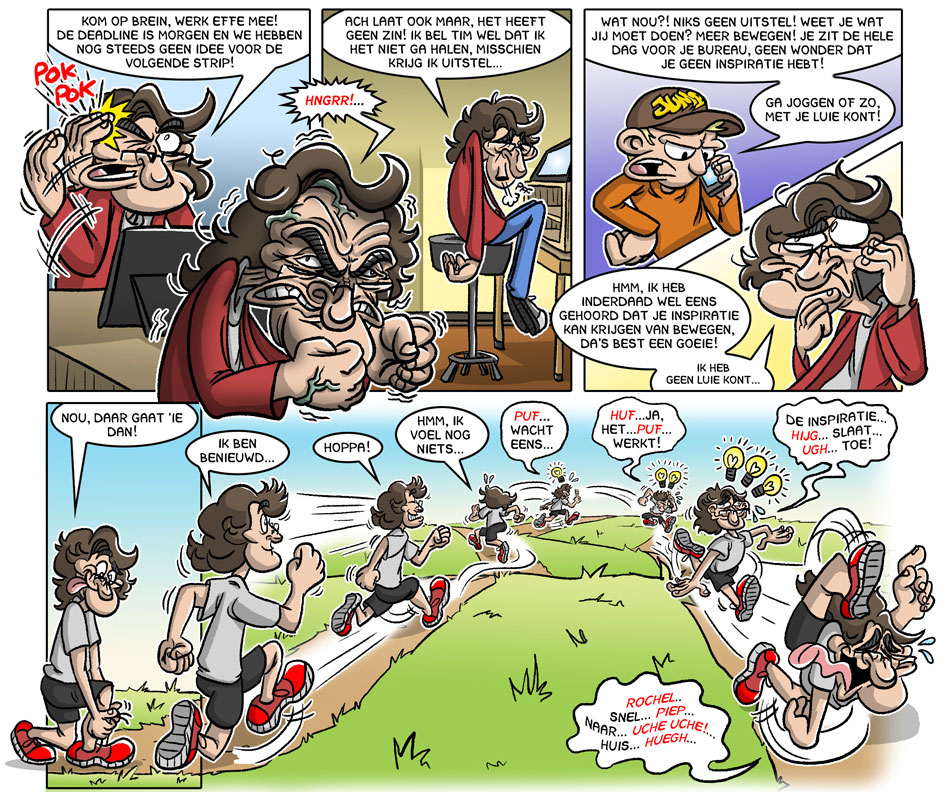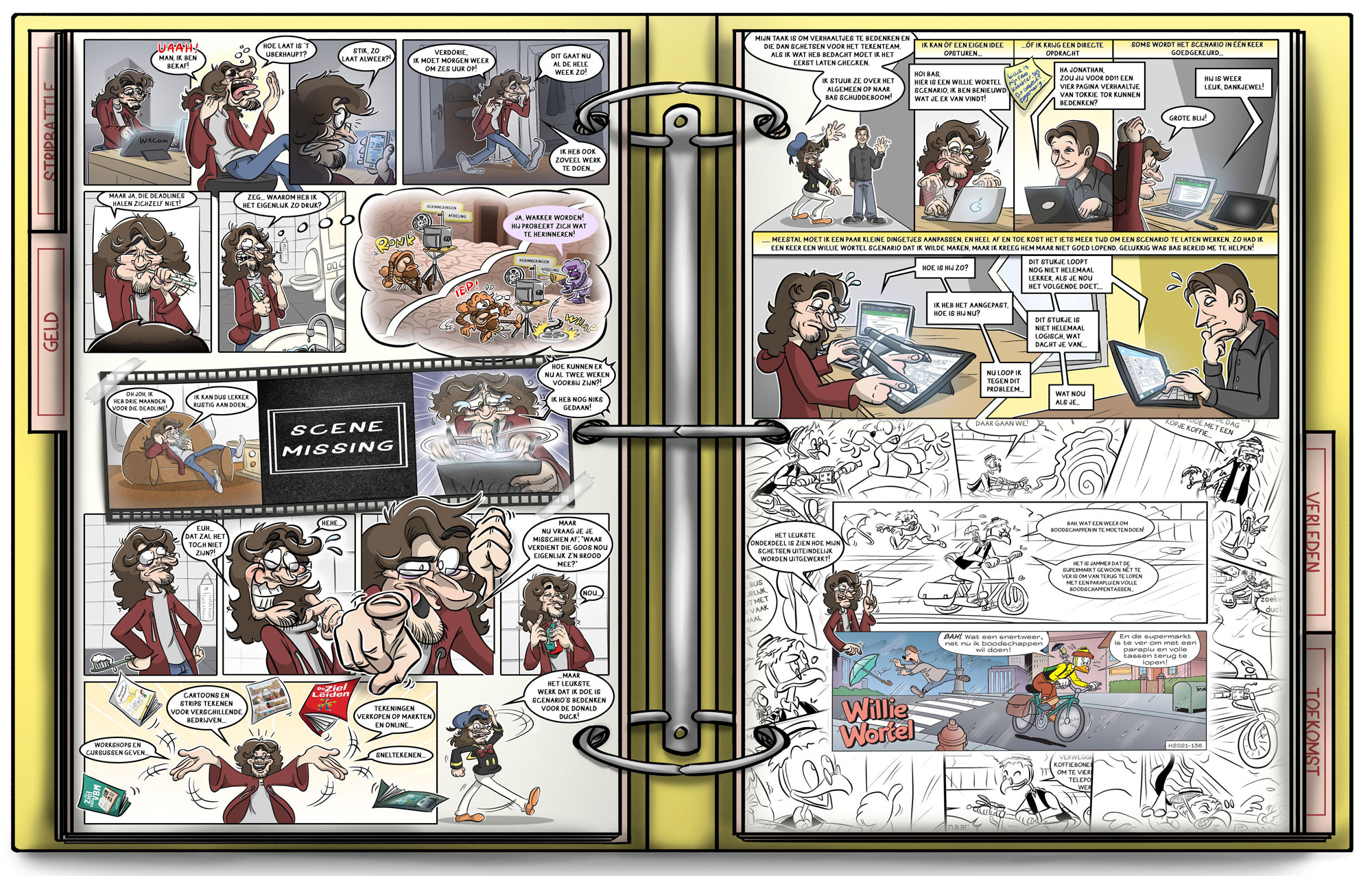 Segment of the 'Hersenspinsels' comic in Stripglossy, in which Jonathan van Engelenhoven talks about working with his editor Bas Schuddeboom on his Disney scripts (2022).