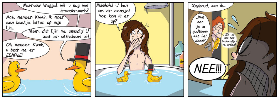 In 2021, Van Engelenhoven won the StripBattle of Personalia's Stripglossy magazine, which earned him a recurring spot in the magazine during the period of one year. This became 'Hersenspinsels' (2021-2022), a funny autobiographical look in the life of a young comic artist. With support of Margreet de Heer, he has continued this theme with 'De Tekenaar' (2024- ) in Jump, a youth magazine also published by Personalia. In this more exaggerated version, the main star is a cartoonist who always misses the deadlines. Since March 2025, Van Engelenhoven has also appeared in the popular science magazine Zo Zit Dat with 'Wie Had Dat Gedacht?!', a comic feature about a girl and her uncle who go to a VR-version of the past to learn all sorts of interesting things about famous scientists.