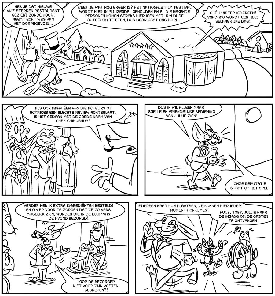 Since 2022, Van Engelenhoven is the writer of the comic feature about 'The Tortoise and the Hare', based on the 1935 Silly Symphonies short of the same name. After the Dutch Disney magazine had lost the license to use the character of 'Br'er Rabbit', this new feature was initiated by editor Schuddeboom as it starred a similar trickster. After writing three stories himself, Bas Schuddeboom asked Jonathan van Engelenhoven to continue the adventures of Max Hare, Toby Tortoise and the other villagers of Pluizendal. Besides a steady scriptwriter, the 'Tortoise and the Hare' comic also found a dedicated artist in the Frenchman Thomas Cabellic.