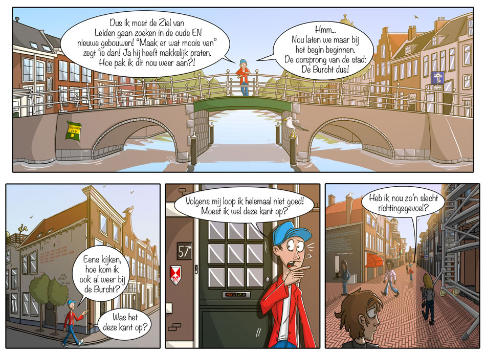While still a teenager, Van Engelenhoven created his first commissioned comics, all for regional projects in the city of Leiden. At age fifteen, he created the comic book 'Walter Benjamin: Cultuur Barbaar!' (2013) for a local an art and music festival with the philosopher Walter Benjamin as the theme. In 2017, he drew the chapter 'Archeologie & Architectuur' in the local comic book 'De Ziel van Leiden', published by FutureManagement on the occasion of a research project for the "soul" and essence of the city of Leiden, initiated among other people by Robert van Oirschot and Nils Bierman. Among the other contributing comic artists were Eline W., Nicoline Heemskerk, Caspar ten Dam, Rooske Eerden and Abel van Oirschot. In the following year, Van Engelenhoven and Nils Bierman alternated on the artwork of 'De Ziel van VBM (2018)', a similar comic on the occassion of the 100th anniversary of the Trade Union for Civilian and Military Defense Personnel (VBM). Other commercial artwork during this period were cartoons for the logistics company MendriX. In the meantime, Van Engelenhoven created his own small press comics, for instance 'Blame it on the Lag' (2015) and 'Radboud' (2016), which he sold at comic festivals.
