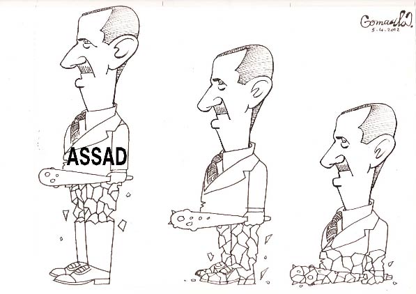 Cartoon, published 5 April 2012. It depicts Syrian president Bashar Al-Assad, whose power is gradually crumbling due to civil war.