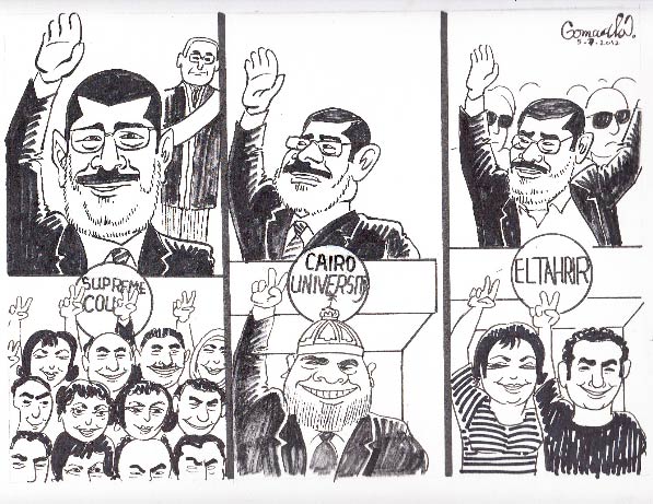 Cartoon, published 5 July 2012. The man featured in the upper three images is Egyptian president Mohamed Morsi.