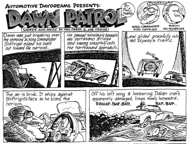 Another strip by Frank is 'The Elderberries', a syndicated daily strip about life in a retirement home, made with Joe Troise. Frank and Troise worked together on other comic projects, such as 'Chateau Defeat' (published in the Wine Spectator) and 'Nigel Shiftright, Automotive Anachronism' and 'Frank and Troise', both for Road & Track magazine. He retired in 2007 due to illness, and died only a couple of days later in Bolinas, California. 'The Elderberries' has been continued by Corey Pandolph for five more years.