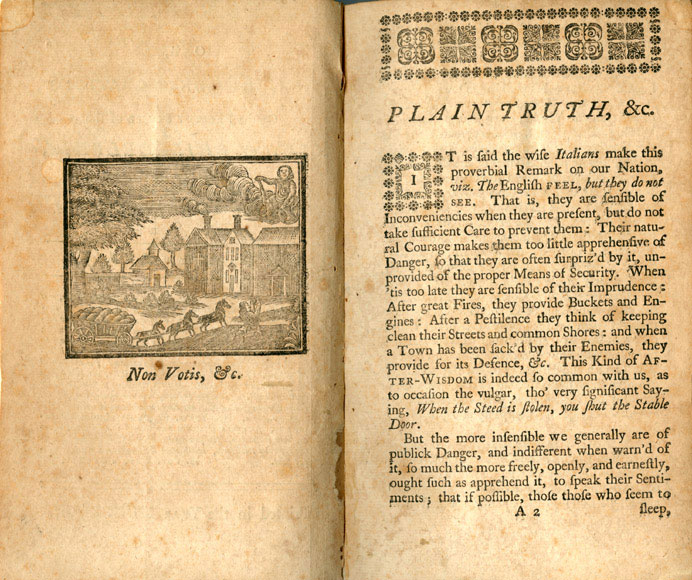 'Plain Truth: or, Serious Considerations on the Present State of the City of Philadelphia, and Province of Pennsylvania'.
