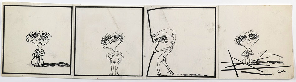 Gal also appeared in Benoît Lamy's documentary 'Cartoon Circus' (1972), a Belgian documentary about cartoons and comics, in which he was interviewed alongside Siné, PichaRoland Topor, Cabu, Jean-Marc Reiser, François Cavanna, Professeur Choron, Wolinski, Willem, Joke and Jules Feiffer