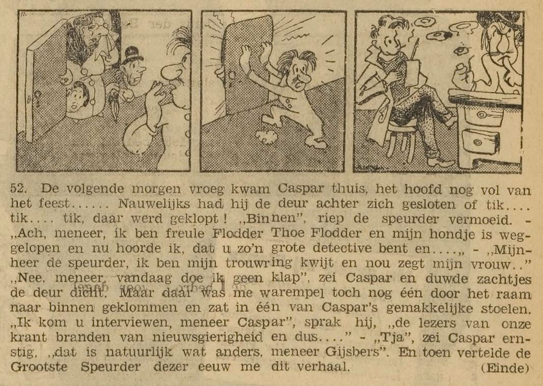 Final episode of 'Casper en de Neminskdiamant', in which the protagonist tells his adventures to the cartoonist, "mister Gijsbers" (Opregte Steenwijker Courant, 20 April 1954).