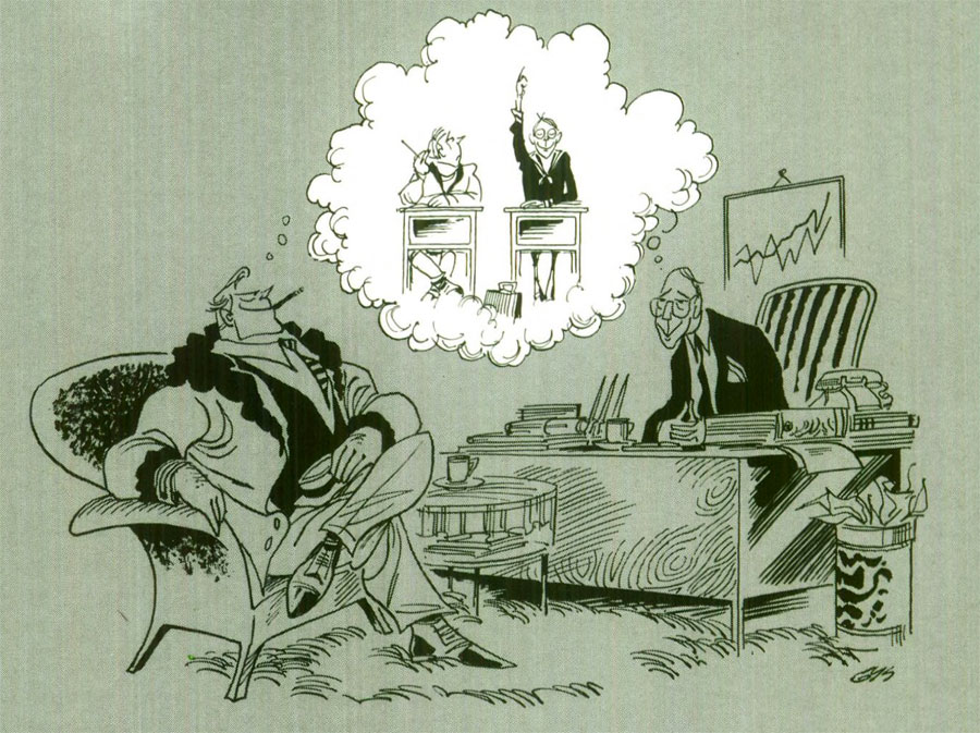 He also provided drawings to union and staff magazines. Along with Arend van Dam and Herman Jonkman, he was a regular cartoonist for Raboband, the in-house magazine of Rabobank (period 1976-1981). From 1984 on, he made many cartoons for VAGWW, the Association of Contractors for Soil, Water and Road Construction. In 1994, a collection of these cartoons was published under the title 'Zand erover...'.