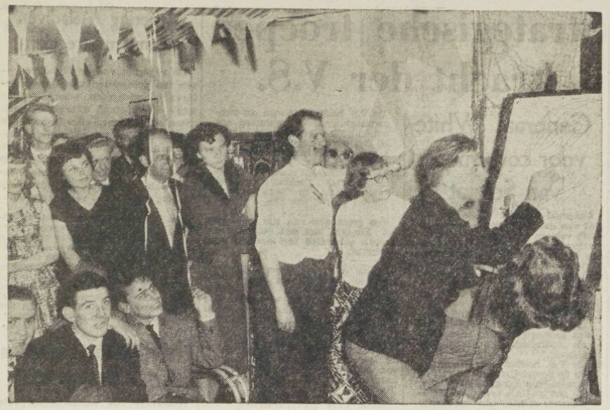 Henk Gijsbers as live cartoonist during a youth event in support of the charity work of a Utrecht couple in Southern Italy (Utrechts Nieuwblad, 16 March 1959).