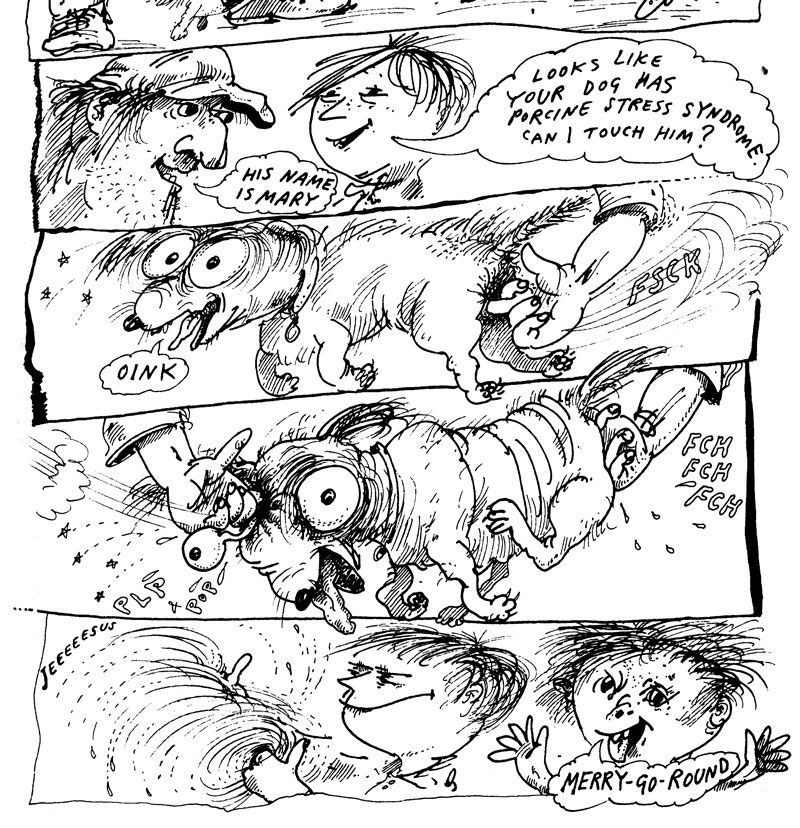 Not much is known about Eric Gnoeff's life and career. By 1991, he was active as a comic artist for Boneyard Press, a publishing imprint founded by Hart D. Fisher which specialized in adult comics. At the time, Boneyard mostly published fantasy and crime comics, often with an emphasis on horror, sex and black comedy. Originally, the imprint was a self-publishing vehicle for Fisher, with Gnoeff being one of the first additional artists to be added to their roster.