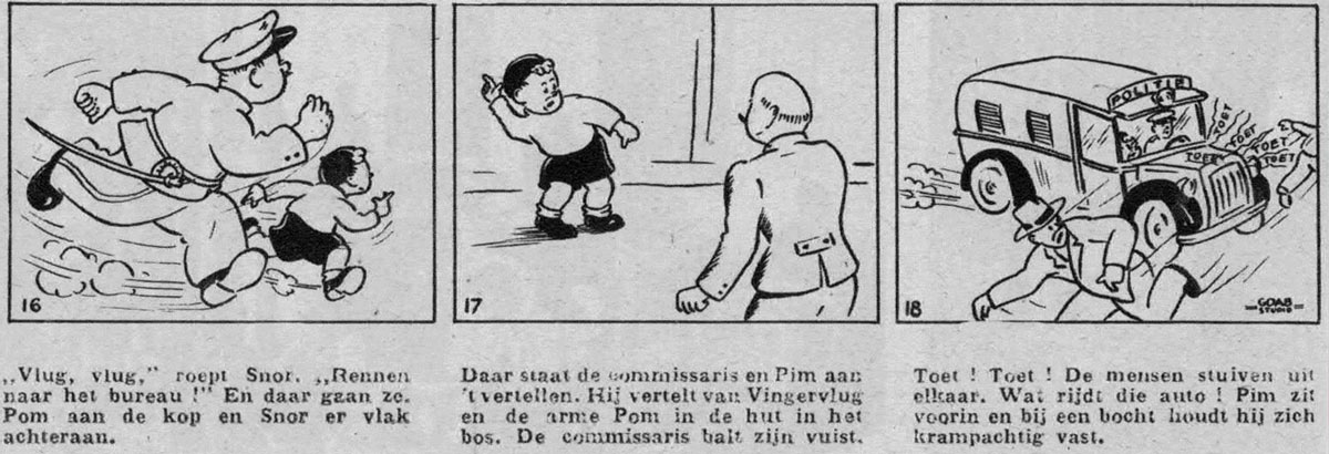 Little is known about the GOAB Studio and its owner. The studio produced and published a landscape format-shaped booklet containing the balloon comic 'De Geest der Savanna' in 1948. GOAB also made the 'Pim en Pom' comic strip, that ran in the Christian magazine De Spiegel from the final issue of 1945 until 1946.