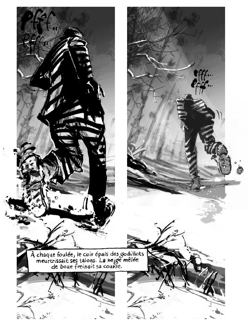 Vincent Gravé has a degree in European Graphic Design. He was a "roughman" for an agency from 1996 to 2003, and has been working as a teacher since 2003. Since 2000 he has also been working on comics, starting with the book 'Message d'hier' with Olivier Gardien for Fnac in 2000. Then came the four-volume series 'Relayer' with Éric Liberge (2001-2006) and 'Loin du mythe' with Charlélie Couture (2007) at Éditions Carabas. Gravé has published several graphic novels with Les Enfants Rouges.