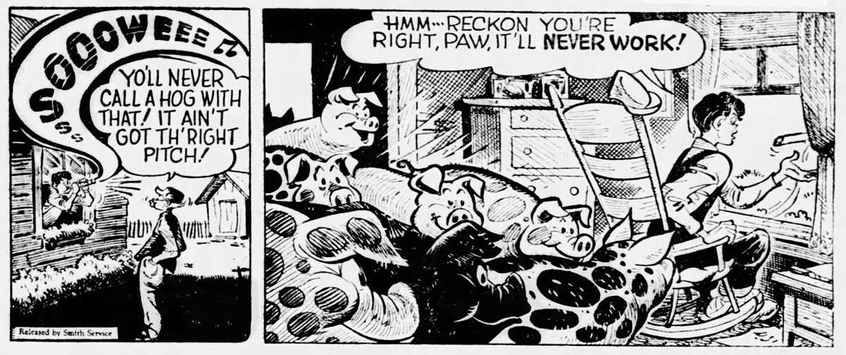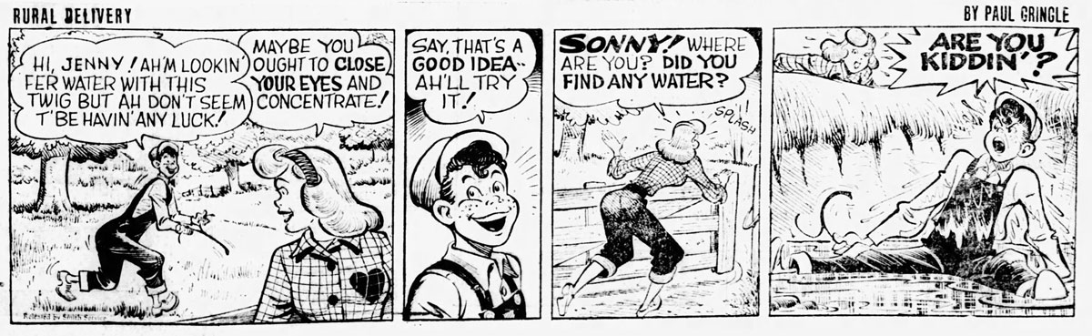 Introduction strip of 'Rural Delivery', apparently drawn by Al Smith, but starring Paul Gringle (The Plattsmouth Journal, 4 January 1951).