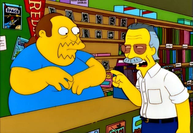 Comic Book Guy and a cameo of Stan Lee, from the episode 'I Am Furious (Yellow)', 28 April 2002.