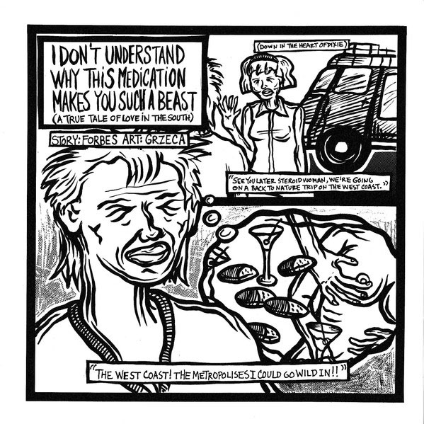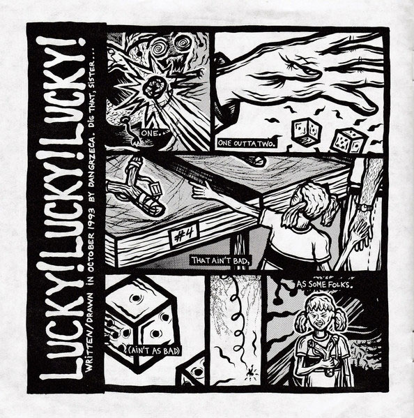 Dan Grzeca contributed experimental sequential narratives to several EP's and singles, such as 'Lucky! Lucky! Lucky!' for the 1993 'Autofuck' single by the Japanese band Zeni Geva. For the 'Nodule' single (1993) by the indie hard-rock band Mount Shasta, he provided the artwork to 'I Don't Understand Why This Medication Makes You Such A Beast (A True Tale Of Love In The South'), a story by the band's vocalist/guitarist John Forbes. This was followed by the three-page narrative 'Visionary' for the 'In Sisters All And Felony' single (1994) by the instrumental avant-rock group Brise-Glace. He also did the inside back cover for the 1996 Space Streakings single 'Taco Beya'. Grzeca additionally designed the cover art for the jazz rock album 'Walls in the City' (1994) by The Denison/Kimball Trio. During the same period, Dan Grzeca also released the 'Chop Fold & Grind' anthology series (1994), to which SKiN GRAFT contributor Paul Nitsche also provided artwork.