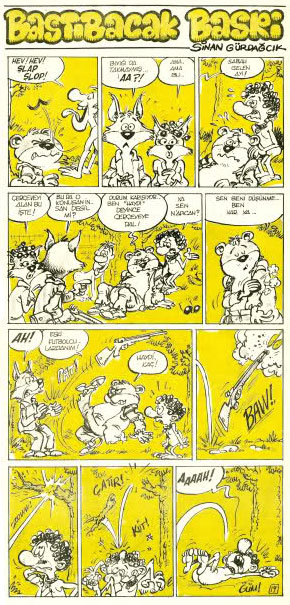 Turkish comic artist Sinan Gürdağcık was born in Edirne. He enrolled at the Devlet Güzel Sanatlar Academy in Istanbul in 1972, where he studied sculpting. His first cartoons were published in Ustura, the humor supplement of the newspaper Gunaydin. By 1973 he was also publishing in Salata, followed by contributions to Gırgır, Çarşaf and Çivi.