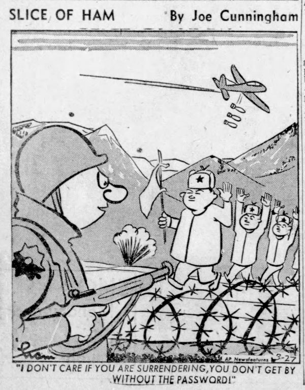 Joe "Ham" Cunningham was a former combat photographer and artist for Yank magazine, who spent many years working as a cartoonist for the Associated Press. Between 1947 and 1961, the agency circulated his cartoon panel/comic strip 'Hit 'n' Run', AKA 'Slice of Ham' or 'Buckey'. Joe Cunningham should not be confused with another early 20th-century U.S. comic artist, Joe Cunningham (1890-1943).