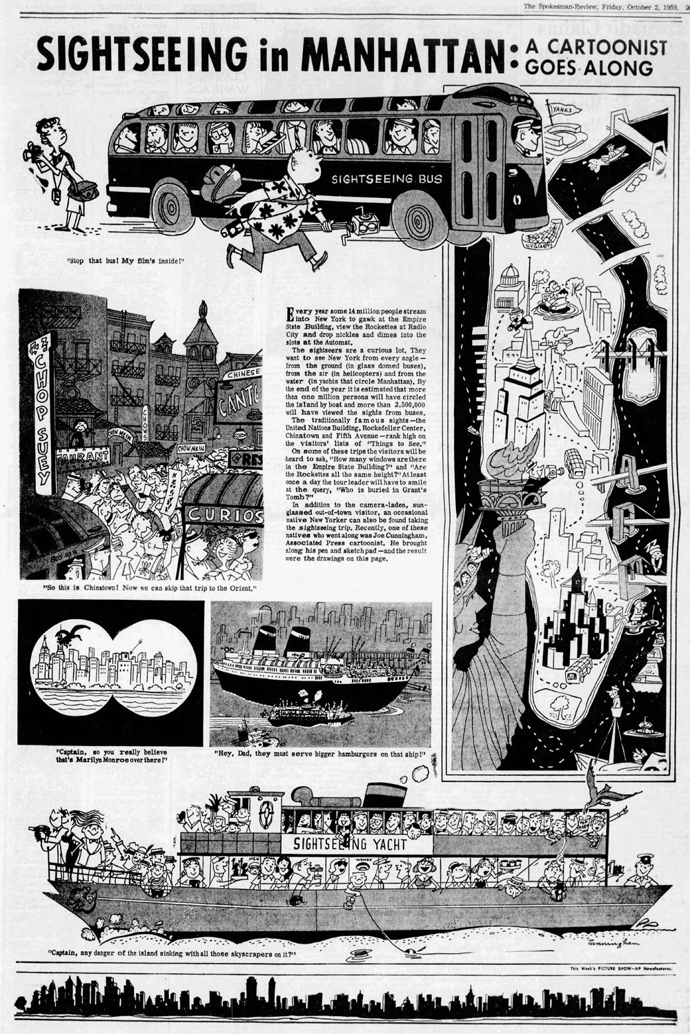 Page with cartoons following a trip to Manhattan (The Spokesman Review, 2 October 1959).