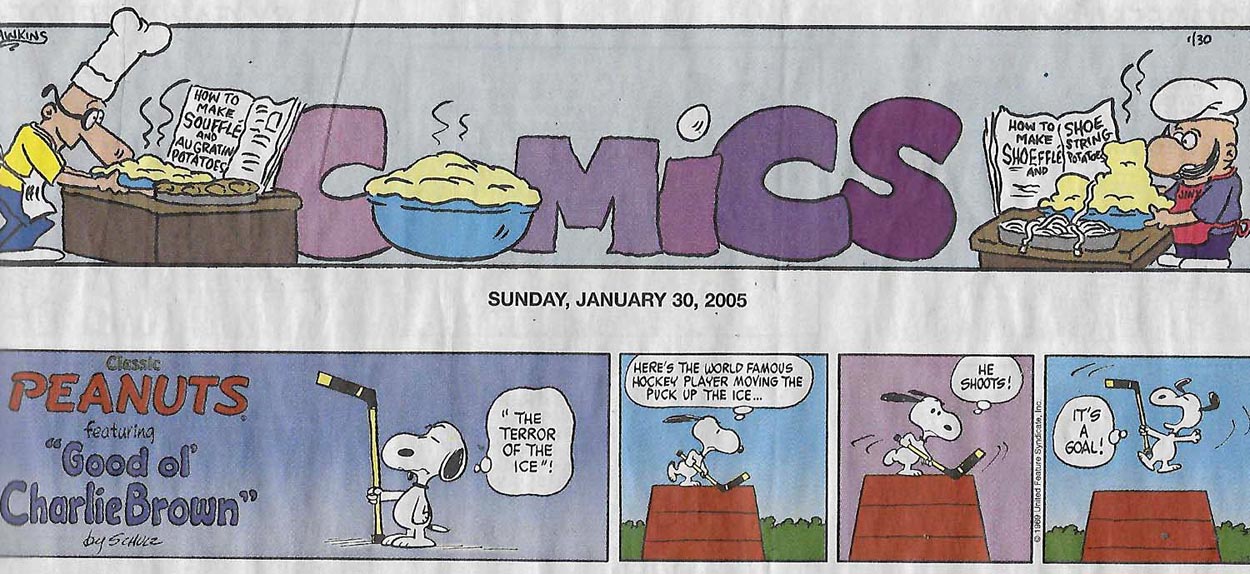 'Hi and Jinx' header from 30 January 2005 ("As you can see, Schulz worked below me", as Mr. Hawkins joked).