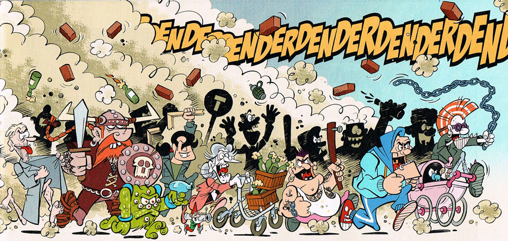 Mark van Herpen published his first comic in a Dutch 1980s comics annual, after participating in a contest by publisher Arboris. In the early 1990s he published in a strip Striptuur, the magazine published by comics shop Haagse Stripshop, and was also present in Jet Magazine of publisher Lombard. He then assisted Minck Oosterveer on both 'Claudia Brücken' and 'Jack Pott' for a period of two years. Van Herpen then lived in Nepal for five years, to do development work. During this period he created his comic 'Hotel Nevelzicht', published in Suske en Wiske Weekblad from 1994 on. Van Herpen worked as a graphic designer for many years before returning to 'Hotel Nevelzicht' for Eppo magazine from 2009 until early 2015. He also makes a monthly cartoon for De Rotonde, a local paper from the town of Eemnes.