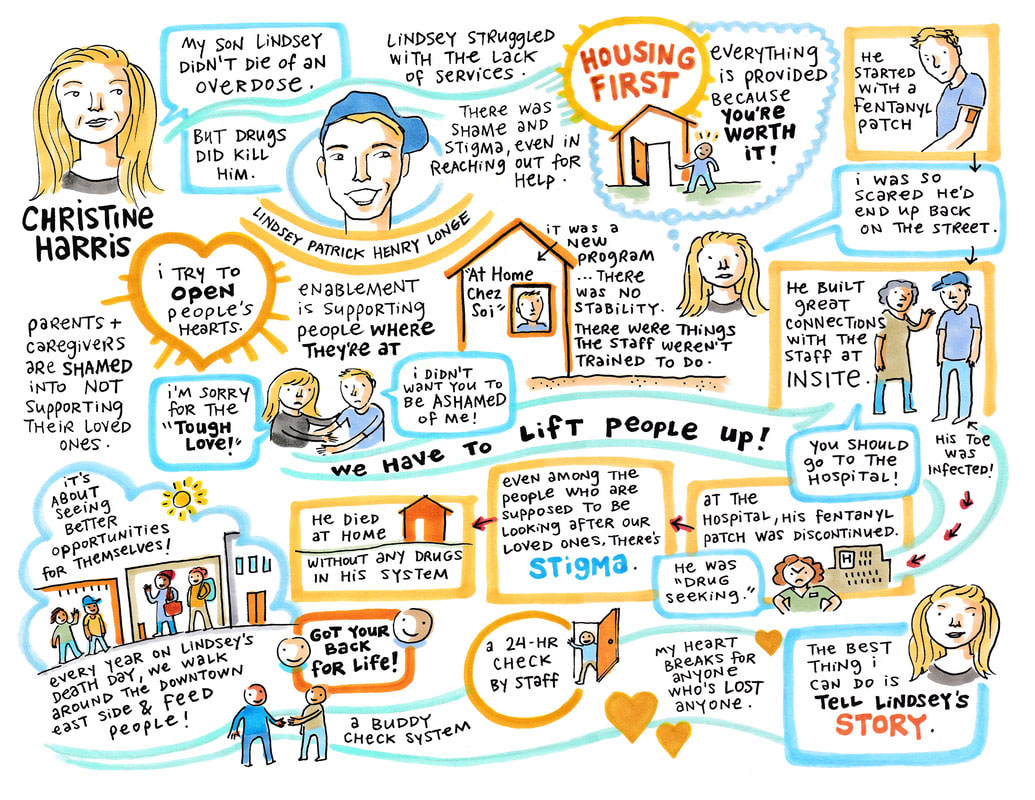 Graphic recording made during the Leduc Living Library for Overdose Awareness Day in 2021.