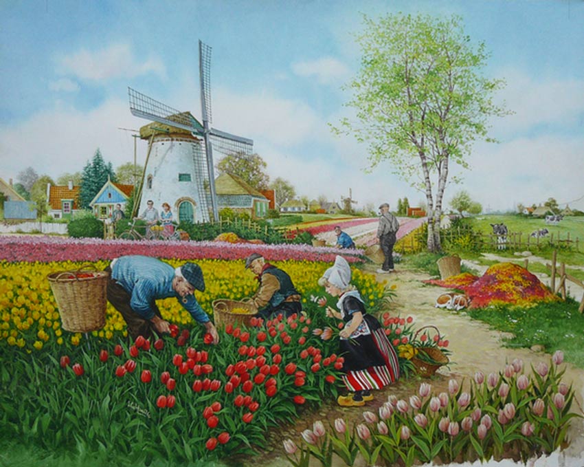 Later in life, Van Hunnik focused on painting idyllic Dutch landscapes and sceneries in watercolor. On sale through tourist shops to this day, these paintings have appeared on prints, postcards, tiles, plates, bowls, cups and other items. In 2013, the artist published his autobiography, 'Toen Wij Uit Rotterdam Vertrokken' (Werkman, 2013). He passed away on 26 July 2016, four days before his 91st birthday.